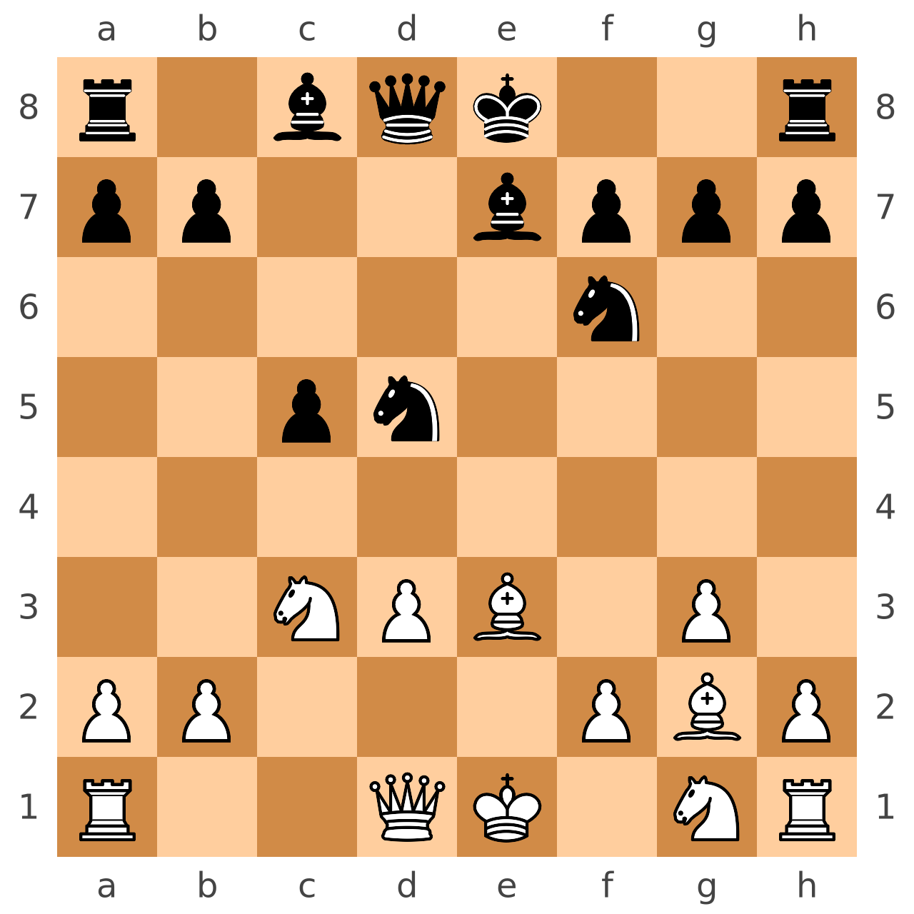 ☘ 1. e4 c5 2. c4 Nc6 3. Nc3 Nf6 4. d3 d6 5. Bd2 e6 6. g3 Be7 7. Bg2 d5 8. cxd5 exd5 9. exd5 Nb4 10. Be3 Nbxd5