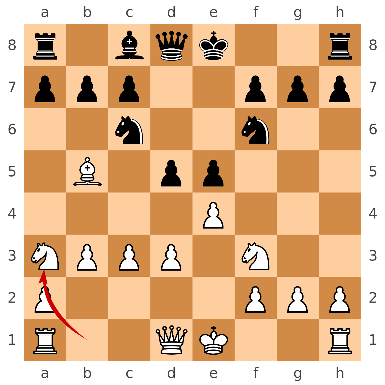 ๏ธ๐โ[8. Nxa3] โ b1 โ a3, captured โ