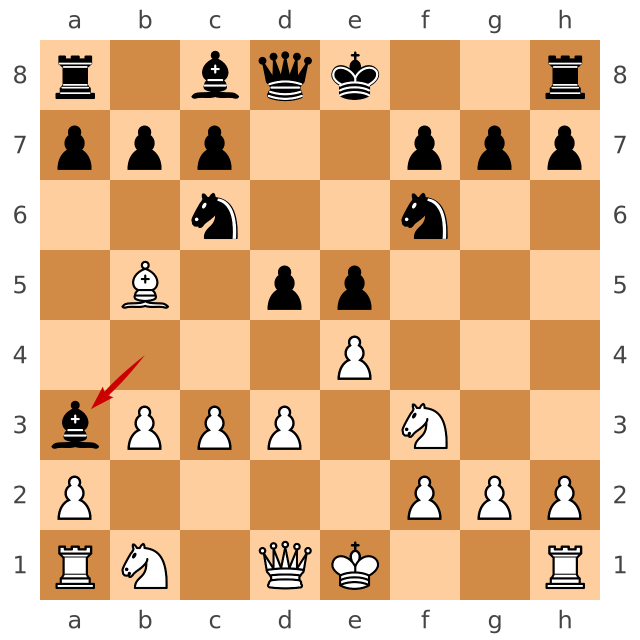๏ธ๐โ[7. Bxa3] โ b4 โ a3, captured โ